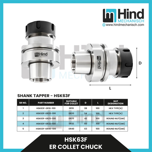 Sold outHSK63F ER Collet Chuck