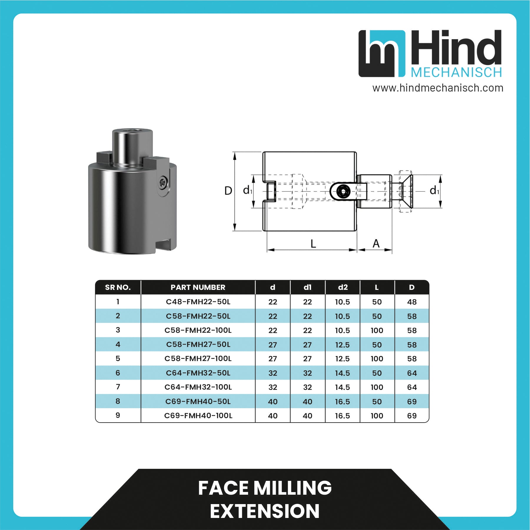 Hindmechanisch's Face Milling Extensions optimize tool reach and machining flexibility without compromising on precision or stability, making them an ideal choice for demanding milling applications