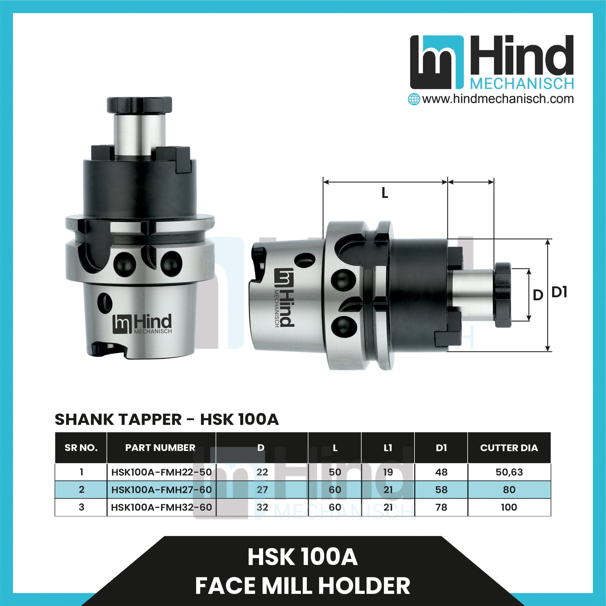 A HSK facemill holder is a precision tool holder designed for use with face milling cutters on CNC machines with HSK (Hohlschaft Kegel) spindle tapers. It provides a secure and accurate connection for holding and positioning face milling cutters.